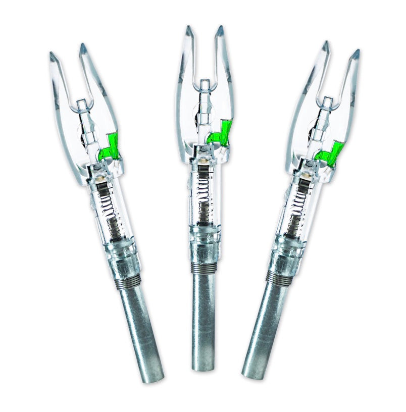 Halo Nocks provide superior, dependable performance with every shot. Their patent pending design wont accidentally turn on when placing on your bowstring. No matter how hard you push on the nock, it won’t activate until it leaves the string. In addition, this innovative design avoids any risk of a “mini-dry fire” that can occur with other lighted nocks that slip forward during release. The Halo Nock is refreshingly simple to use and available in a variety of colors and sizes
