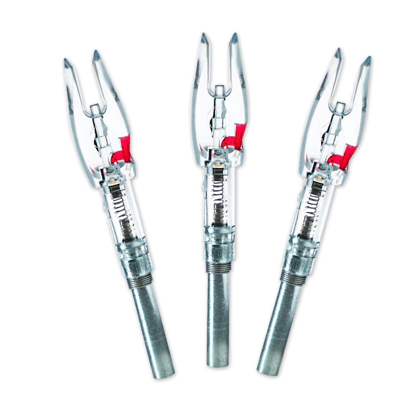 Halo Nocks provide superior, dependable performance with every shot. Their patent pending design wont accidentally turn on when placing on your bowstring. No matter how hard you push on the nock, it won’t activate until it leaves the string. In addition, this innovative design avoids any risk of a “mini-dry fire” that can occur with other lighted nocks that slip forward during release. The Halo Nock is refreshingly simple to use and available in a variety of colors and sizes